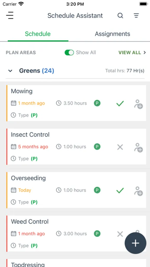After you have Turf Assistant setup with your Routines the Scheduling Assistant can automatically assign Tasks to your Workers or you can on the fly (and very quickly we might add) assign Tasks manually each day. The choice is yours of how you wish to use it. Someone didn't show up for work? No problem. Quickly reassign Tasks to other Workers or ignore them and do them the next time they are due.
