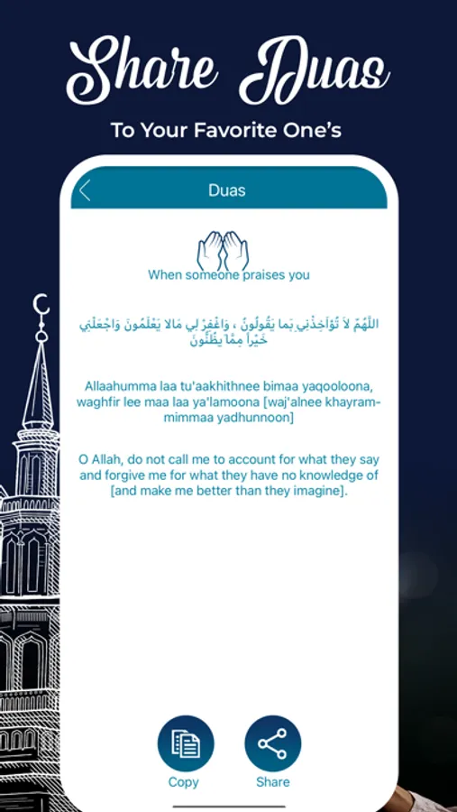 Share Ramadan wishes with your loved ones just open Wishes section & long press on wishes to copy or click share button.