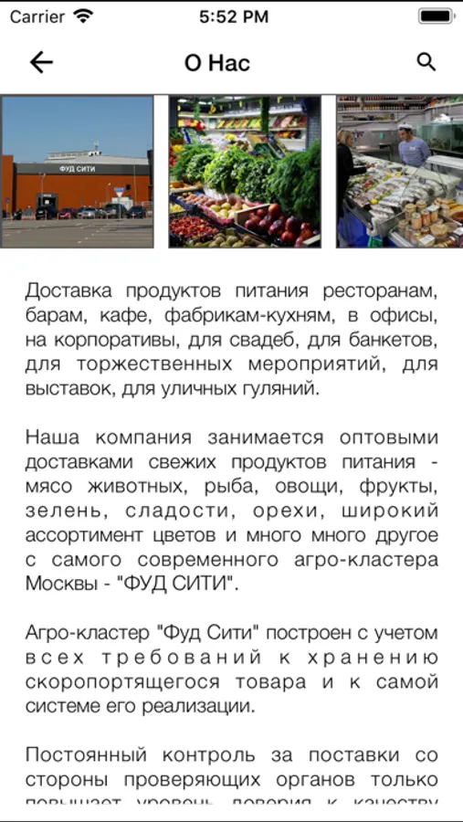 Наша компания занимается оптовыми доставками свежих продуктов питания - мясо животных, рыба, овощи, фрукты, зелень, сладости, орехи, широкий ассортимент цветов и много много другое с самого современного агро-кластера Москвы - "ФУД СИТИ".