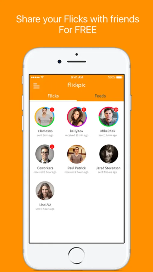 Users can send their flicks to one person or a group of friends. Flickpic allows users to Flick their moments with one or multiple friends in real time.