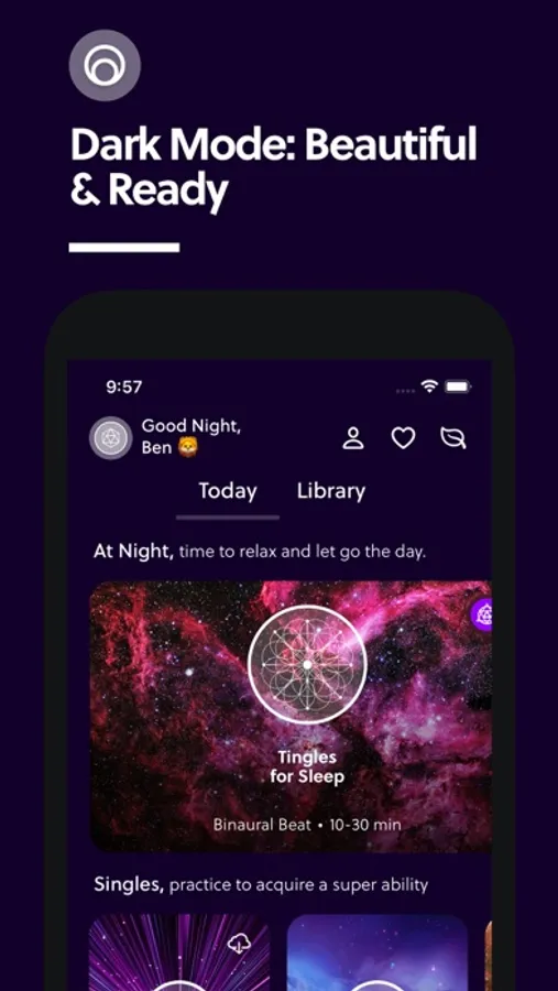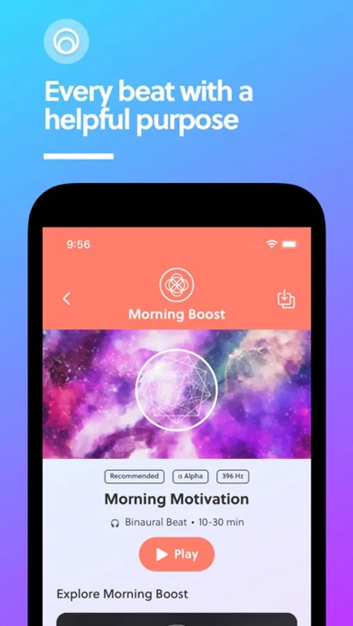 In each session you'll have a specific binaural beat with a specific purpose as well as a specific universe and sacred geometry visual.