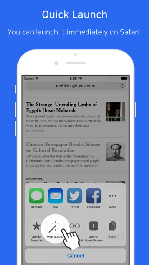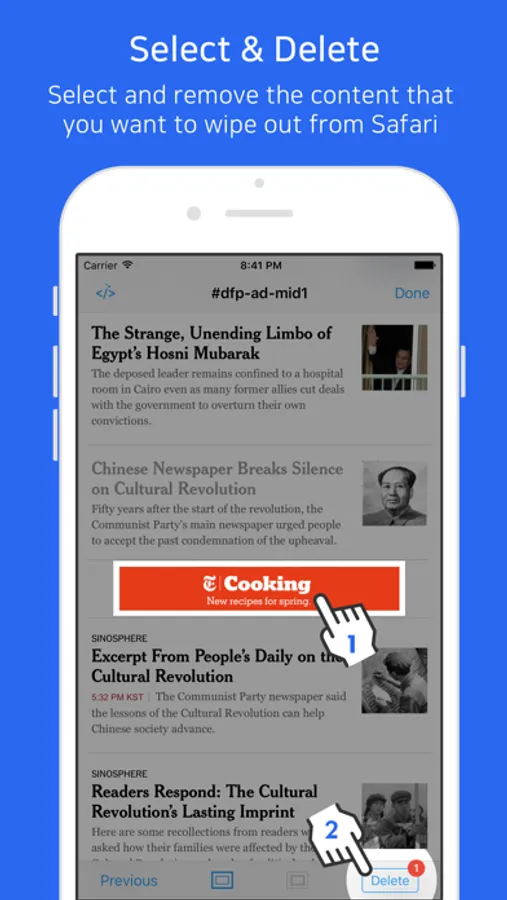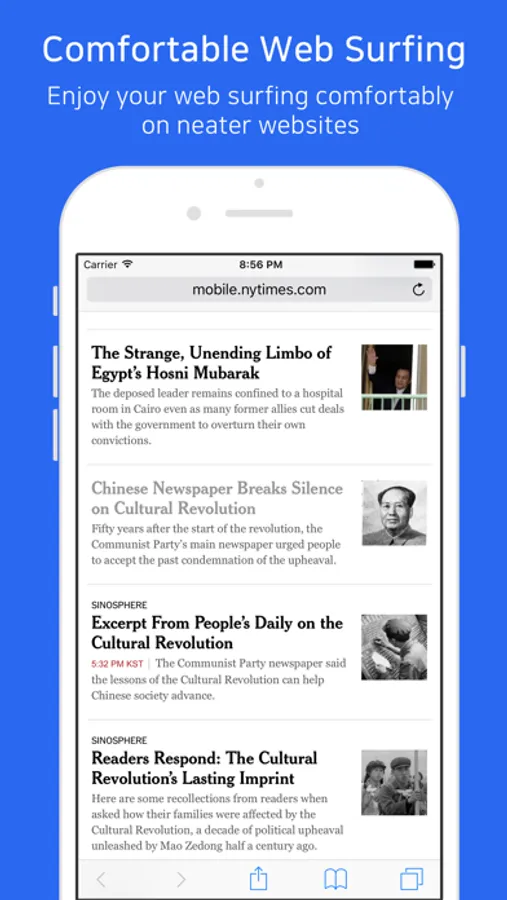 You can delete intrusive advertisement banners, pop-ups, comment lists, and SNS buttons only with a few touches