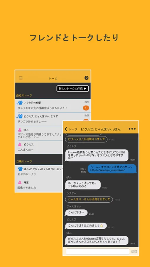 SNSアカウントなどの個人情報を交換する事なくフレンドチャットやチームチャットと同等の事ができます。