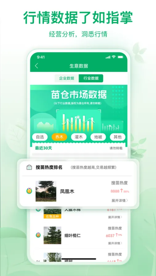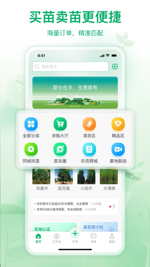 苗木求购:实现足不出户货比多家,上传苗木求购清单,快速、高效、精准匹配苗木资源。