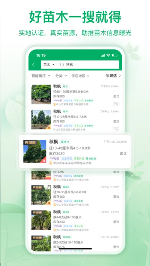 苗友社区:苗友圈动态全国用户实时同步,提高产品曝光,打造苗木人脉圈。
