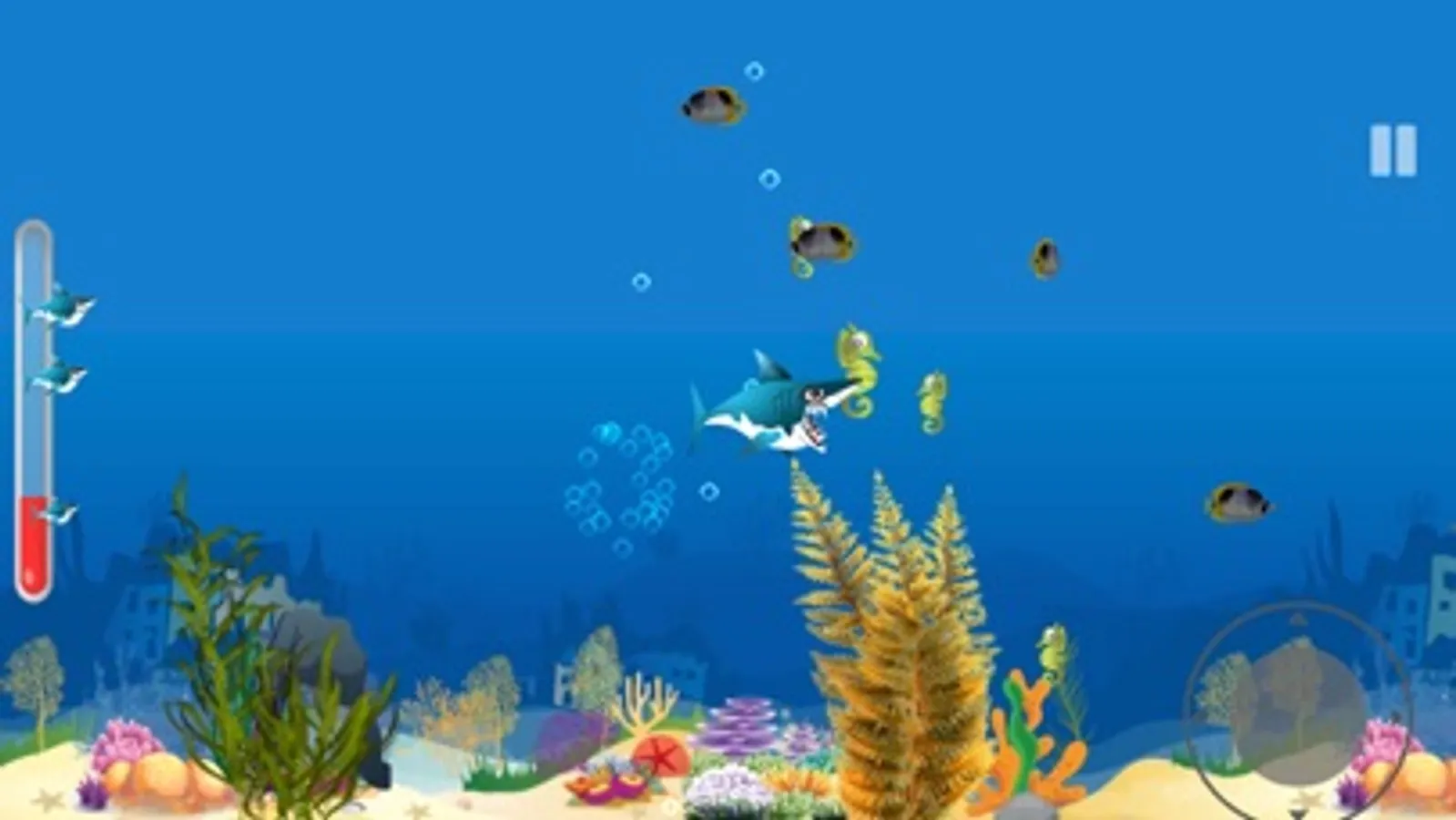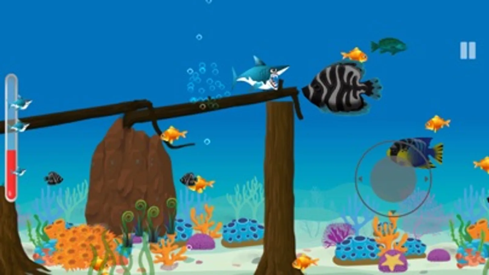 The shark is very hungry and scary. You have to feed him growing up to be a tycoon fish of the sea.