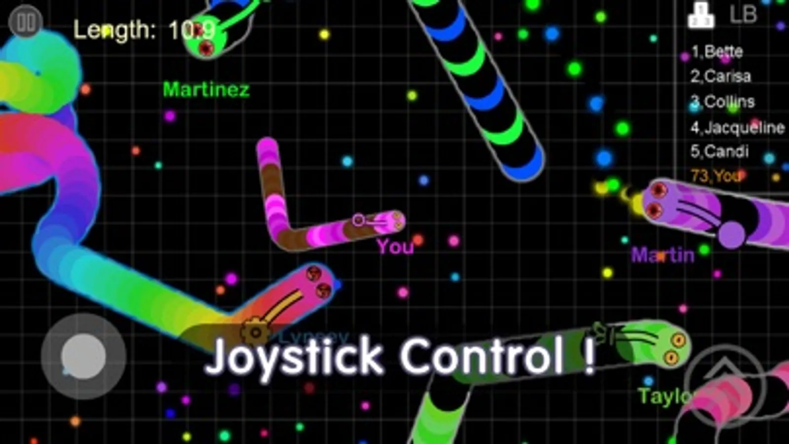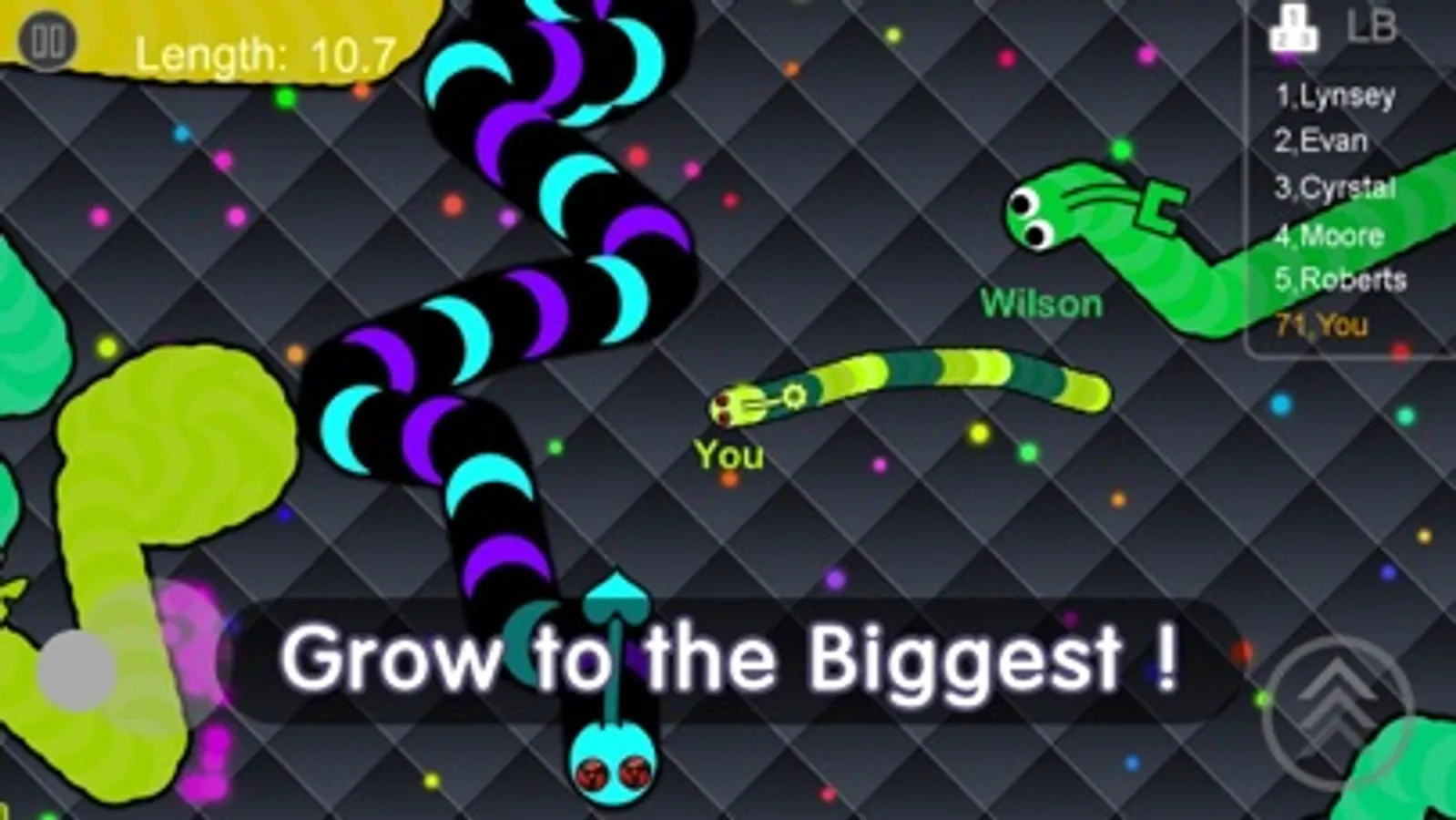 Eating agars will make you longer and bigger. Avoid to hit others snakes with your head.