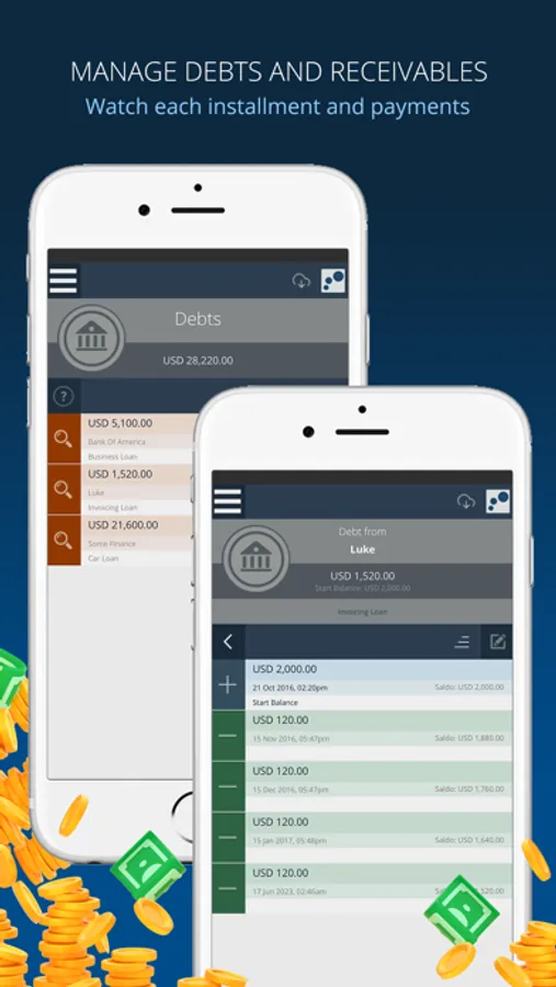 Record and analyze your income, expense, debts, and receivables. Anytime, anywhere, online!