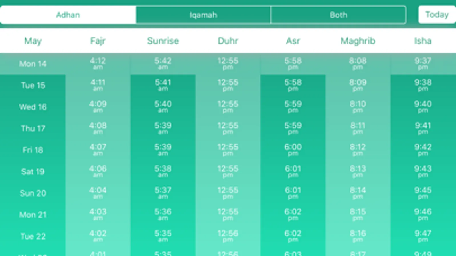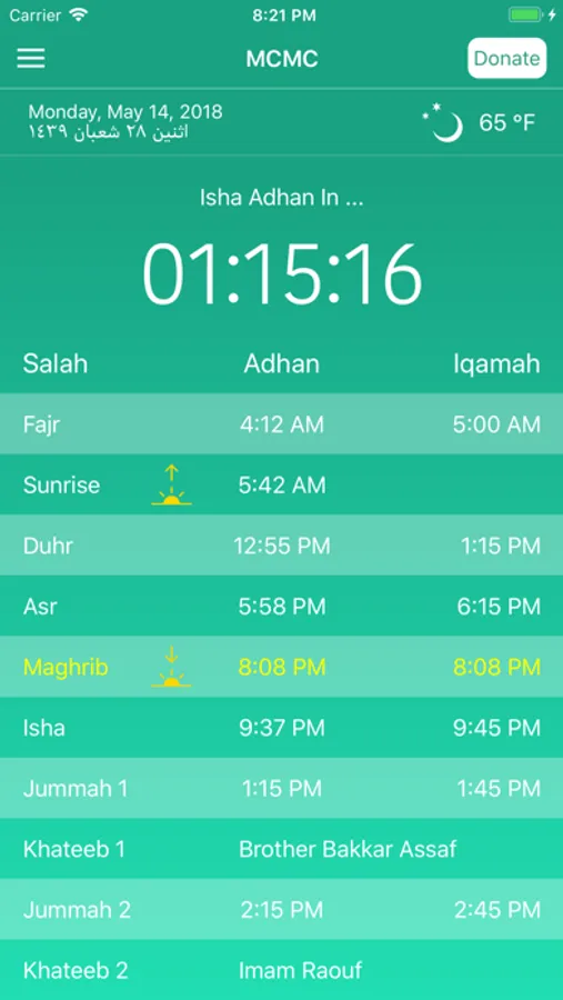 * View current Salah Times - Adhan/Iqamah