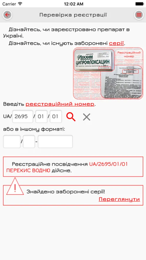 - Контроль заборонених серій препаратів, копії документів про заборону