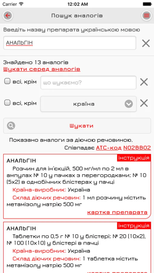 - Пошук аналогів за діючою речовиною , за основними властивостями, країною-виробником, т.і.