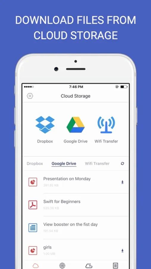File Manager can save your files to your iPhone or iPad so that you can use them offline anytime.