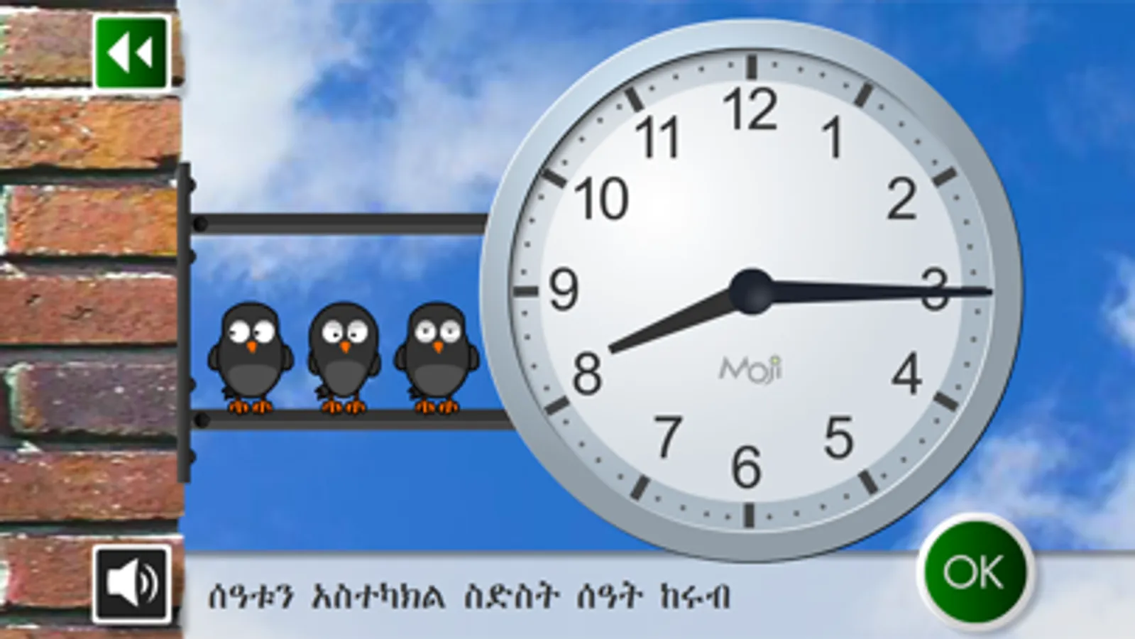 Yeneta Yeseat Astemari is a learning game for kids who are about to learn how to tell the time in AMHARIC. With a simple yet effective learning approach the kids can learn to tell the time with support of encouraging speech and graphics. The application is easy to use and provides a number of different levels of difficulty.