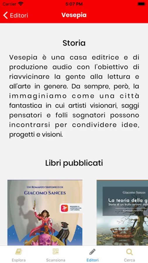 This is the official application of Vesepia, fledgling publishing house and audio production that aims to bring people to reading, not through the usual library products, but making them more attractive because it combined with symphonic music through the most modern forms of interactivity. So we combined the paper book, symphonic music and other digital innovations making them flow in a library product that we wanted to call Symphonic Novel.