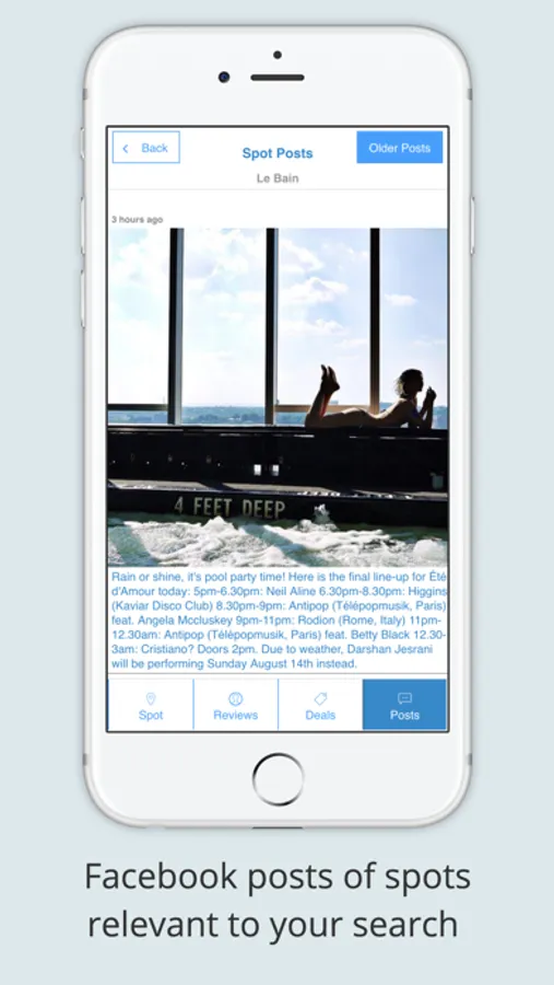 2. See Posts from relevant Facebook Pages in the search area to get more insight into happy hours , live music, specials, events etc.
