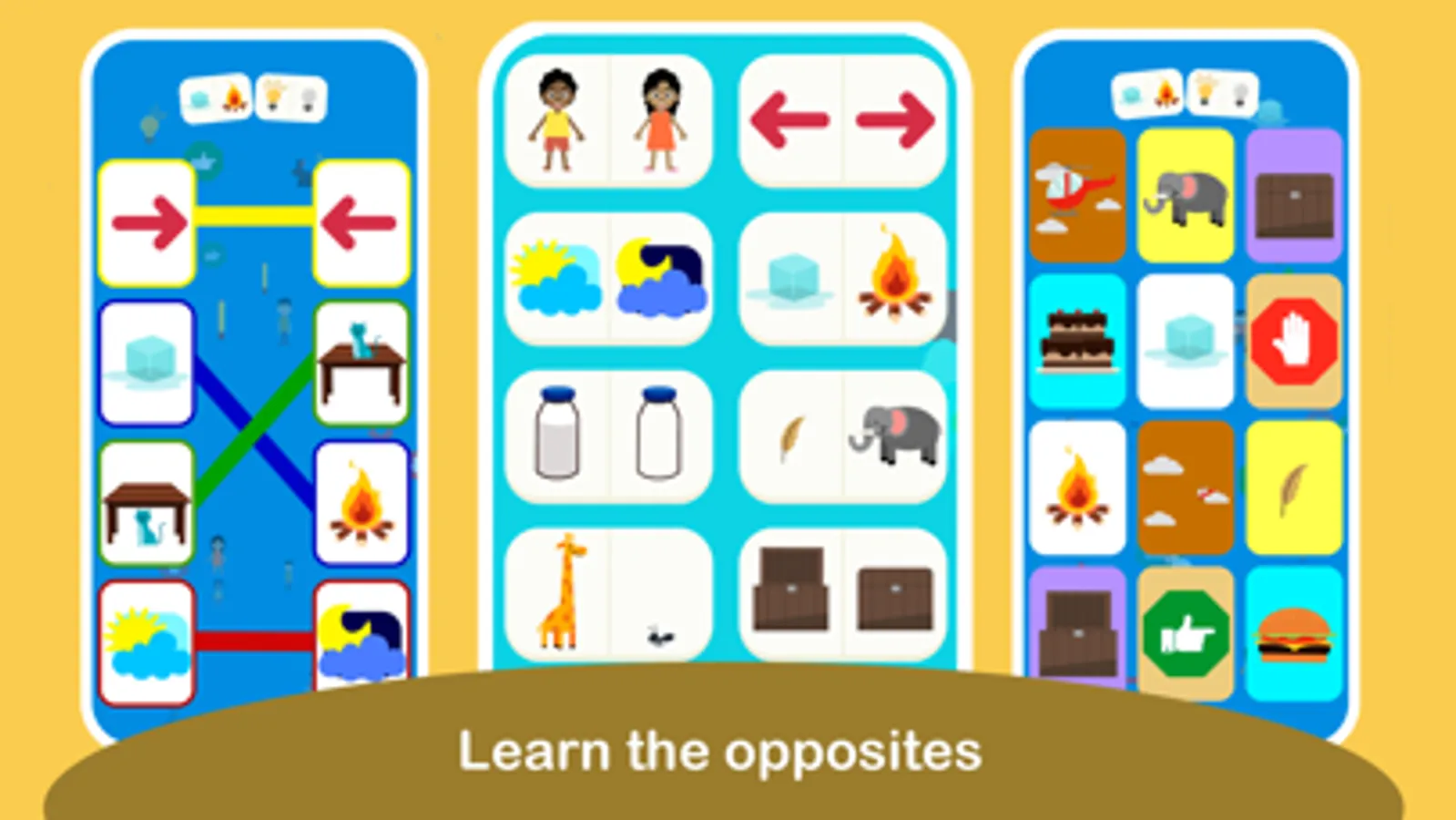 Activities to connect the opposite images, identify which is the opposite of each word and form pairs of opposites.