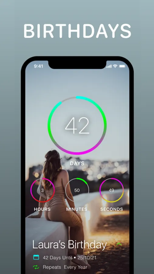 You can count towards what's coming up, keep track of time since important moments, and set reminders that work around your events. Everything stays clear and easy to manage, whatever you're using it for.