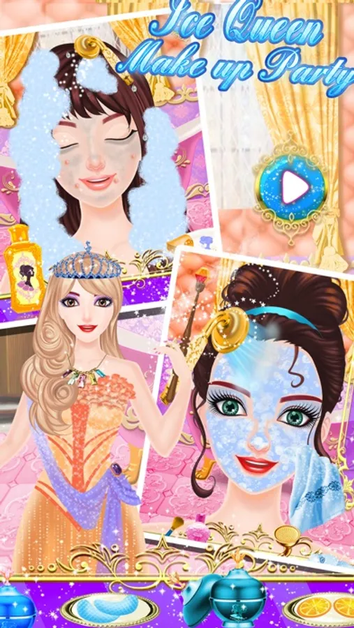 Our beautiful ice queen will attend a nice party today. Come to play the role of her beauty assistant and help her make up and dress up. Firstly, you can help the queen have a face spa. Clean her hair and dry it with the drier. Then use the comb to make her hair smooth. Next step, you can use the hairpin to fix her hair and use the facial cleanser to clean her face carefully. After drying her face with towel, you can use the tools and cotton swab to get rid of her pimples one by one. At last, come to make a facial mask and eyes mask for the queen. After the spa, you need to make up for the queen. We have prepared all the cosmetics that you need to use. Come to choose the suitable eye brows, eye shadows and lip colors for her and let her wear beautiful contact lenses. Try your best to make her face as perfect as you can. The last stage of the game, you need to dress up the queen with excellent dresses and accessories. Choose one set of beautiful hairstyle for her and let her wear pretty long dress,necklaces and crown happily. Show us this beautiful queen in the party at last.