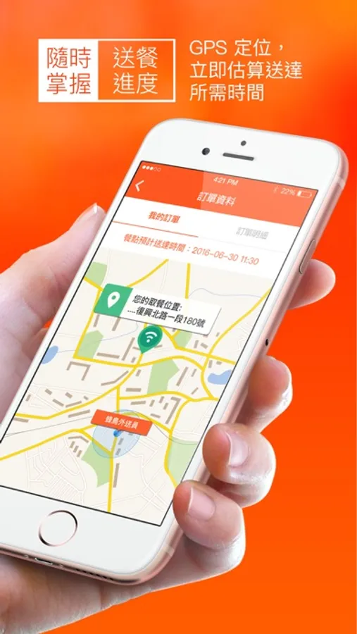 ・定位服務:藉由 GPS 定位,立即估算送達所需時間
