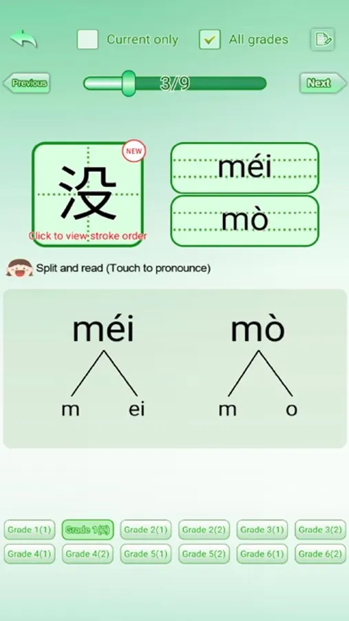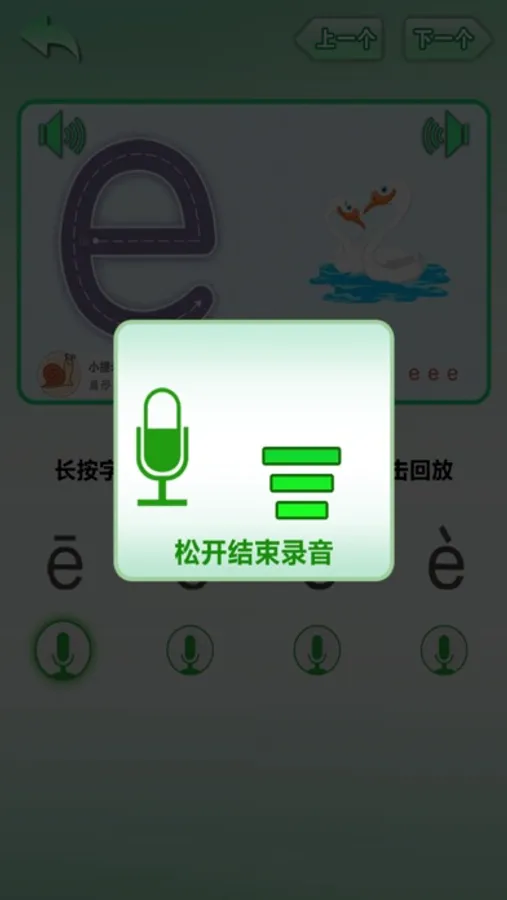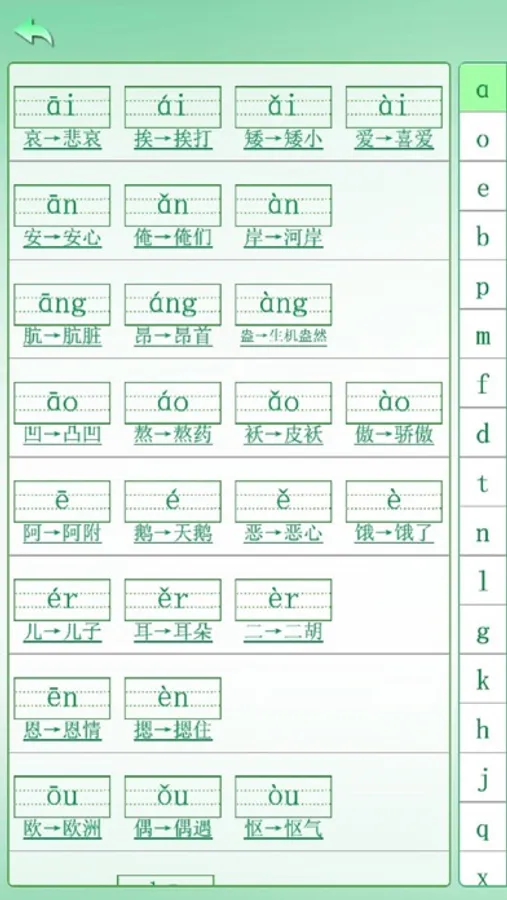 Learning and memorizing are carried out separately for each letter, learning the four-tone pronunciation and word application examples.
