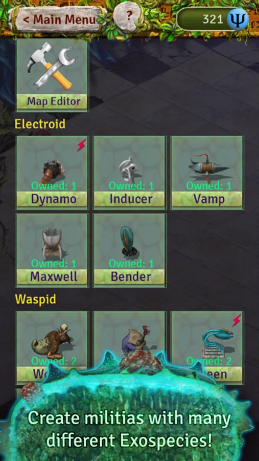Are you ready for Exospecies? This hypnotic, simultaneous turn-based strategy game will dare you to assemble an alien militia to defend the human race across exotic alien locales. You can battle challenging AI in a local game or face off against friends or random opponents online! The only way to win is to combine powerful abilities and come up with killer strategies to outwit your opponent at every turn.