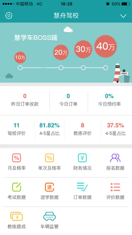 给驾校高层管理者带来:查询驾校招生数据、财务数据、考试情况、教练通过率、积压学员数据,分析掌握经营情况,及时调整运营策略支持多个驾校数据查询。