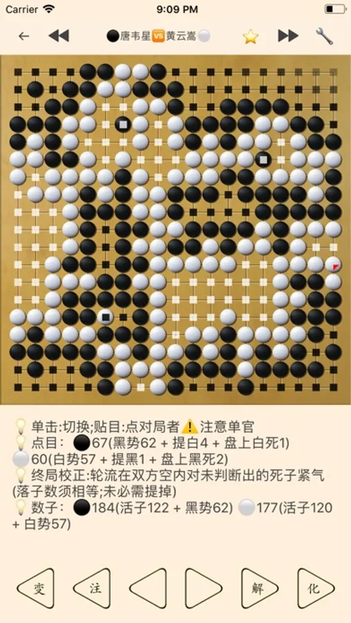 围棋宝典含大量死活、手筋、官子、布局、定式、中盘的棋谱、习题、教程,覆盖从基础入门到业余乃至职业水平,棋谱库更是包罗古今中外名人名局乃至人工智能的棋谱,是一款可以随时随地人机、单机对弈和对战、形势判断、打谱、记谱(摆题)、做题、题型搜索、摆子搜题、摆子搜谱、学习、练习、研讨、看直播、看比赛、搜棋谱、学视频、考试、投票的围棋教育、教学软件;支持根据记忆曲线制定计划任务、收藏夹(错题本)、语音讲解,条件搜索、实战常型搜索、棋步搜索即手顺搜索、棋谱上传、接收和分享(SGF/GIB/ZGF/ZIP);所有资料精挑细选,是谓宝典;很多棋谱带有文字解说和分支变化图。本软件定期新增大赛棋谱,历史名局,各种习题、教程、学习资料,让棋友与时俱进。棋谱习题资料来源公开网络。