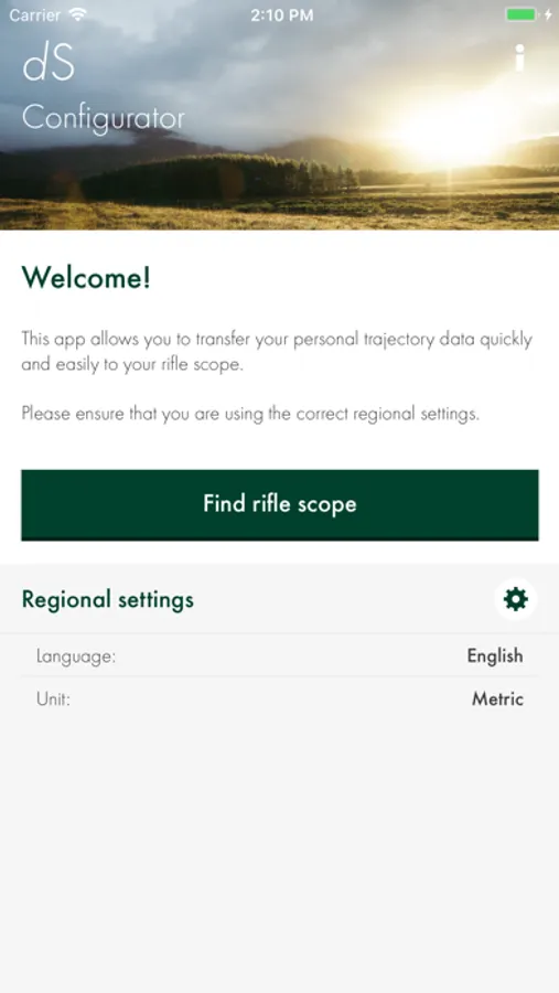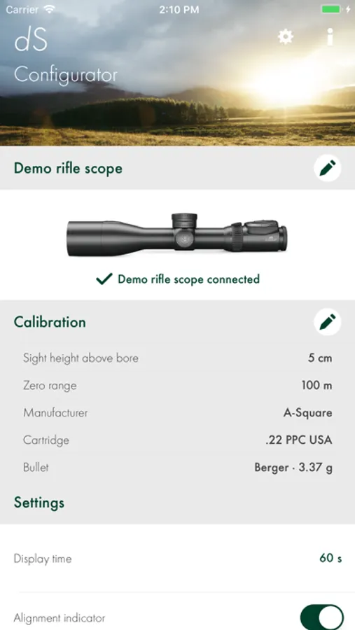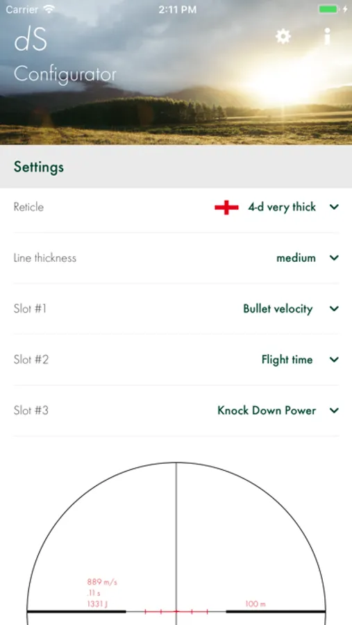 The dS Configurator app helps you to set the dS to your personal firearm/ammunition combination and to customize the display.