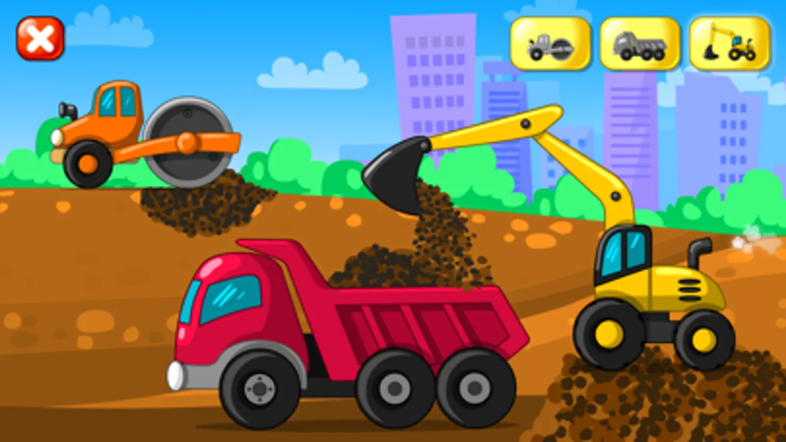 • Construction site: Be the head of the building site and roll up your sleeves. To fill the holes with soil, dig up the material with a digger, take a truck to transport it and use a road roller to flatten it.
