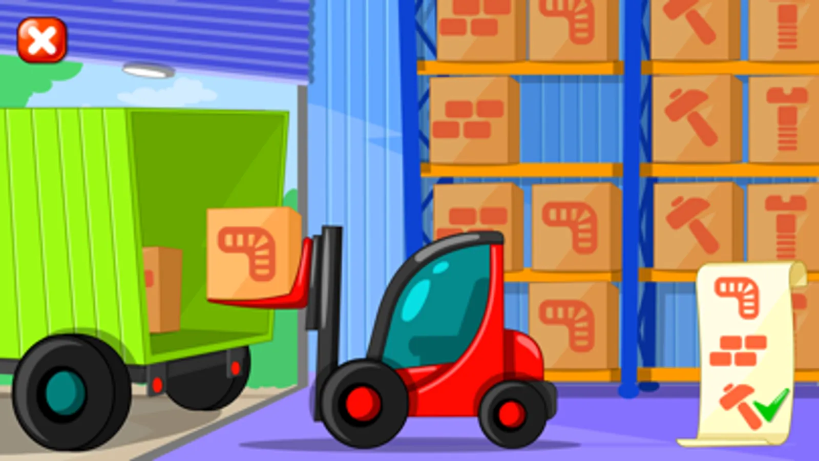 • Warehouse: You are getting so many orders! Pick up the phone! Customers want to order building material. Follow the shopping list, use a fork-lift and load a truck with boxes.