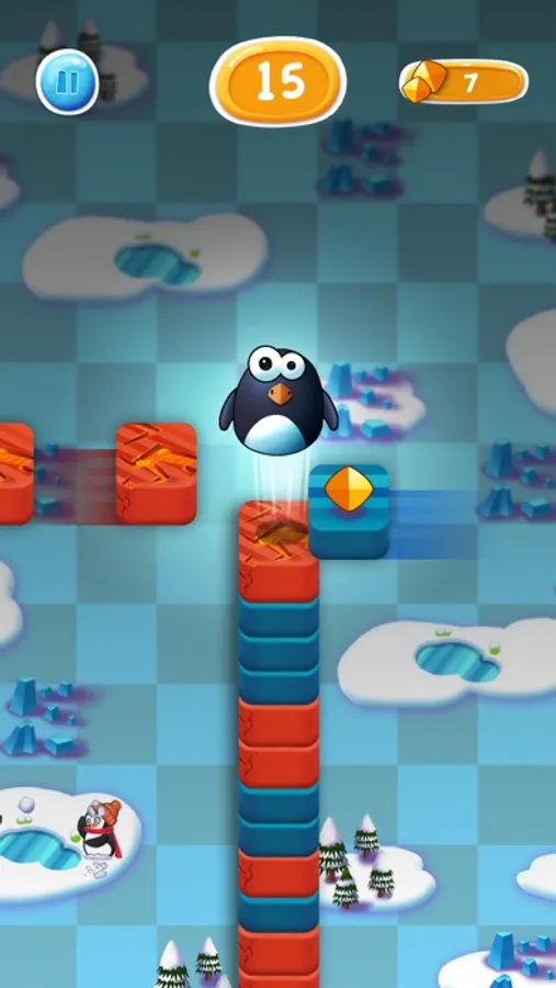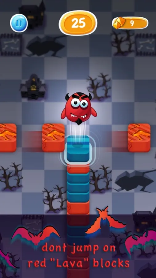 ◉ Jump on the blue blocks and avoid (jump over) the red blocks.