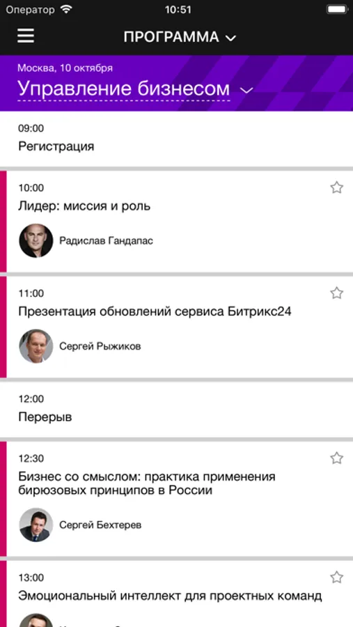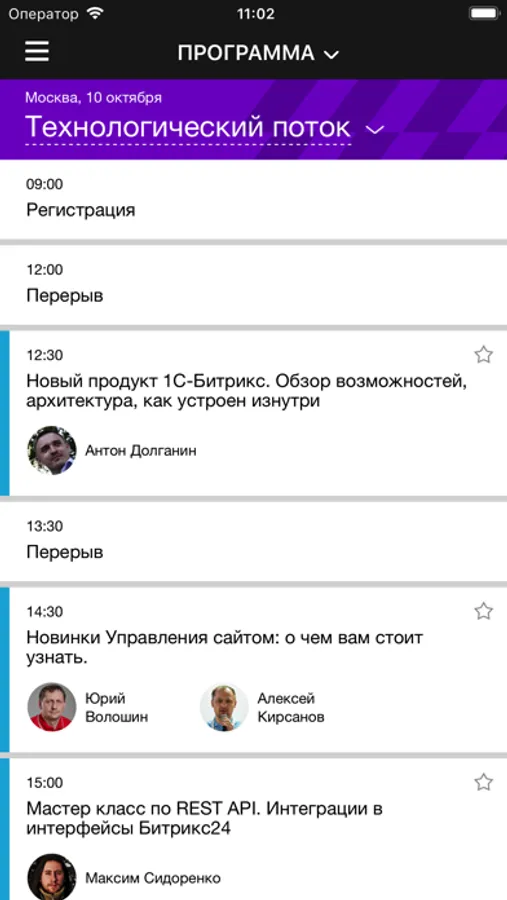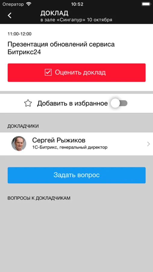 Программа конференции, схема проезда и места проведения, информация о докладах и спикерах, анкета участника, контакты, вопросы к докладам, push-уведомления.