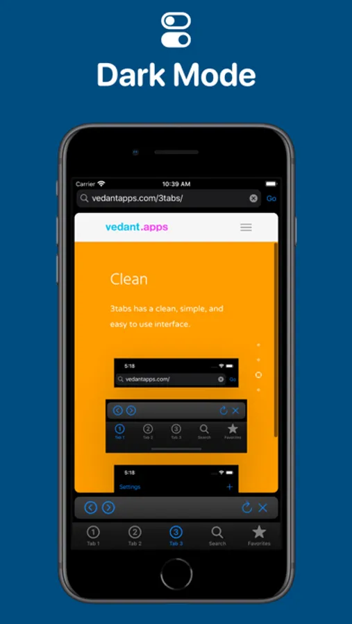 With 3tabs you can easily switch between tabs with just one tap. The websites always stay loaded up.