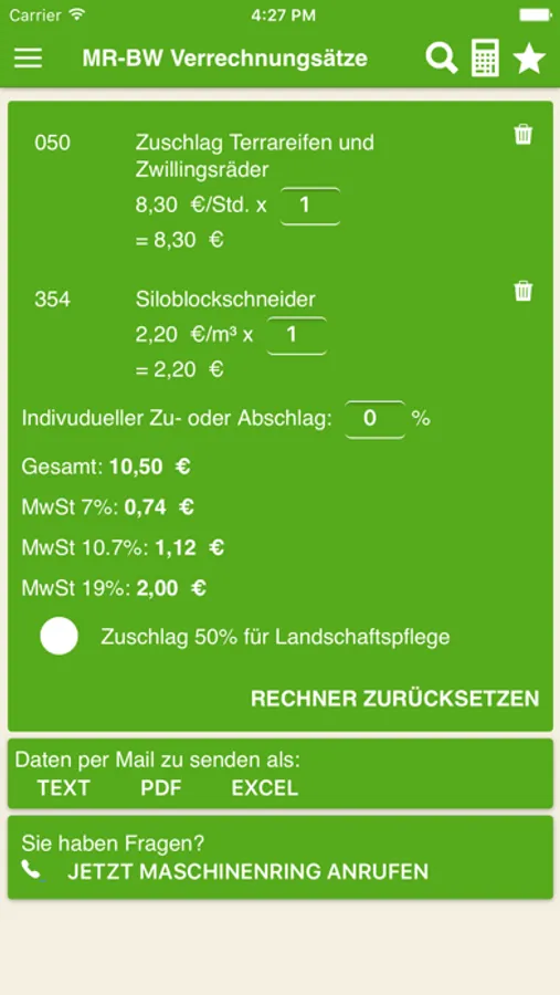 Mit unserer neuen App haben Sie von überall Zugriff auf die Verrechnungssätze und profitieren von vielen Zusatzfunktionen. Sie können beispielsweise eine Favoritenliste anlegen oder im Rechner direkt mit den Verrechnungssätzen kalkulieren. Die App können Sie zusätzlich als Web-Version an Ihrem PC nutzen.