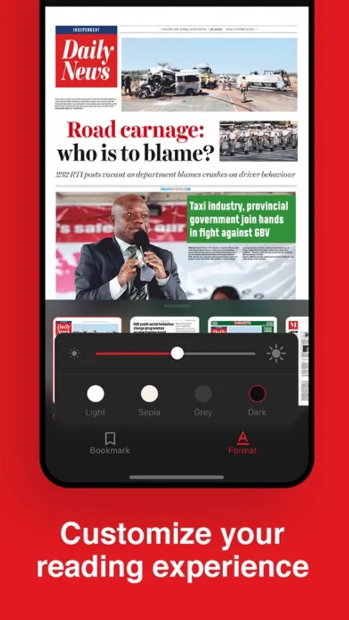 The Daily News is a newspaper tailor-made for the time challenged, rush hour reader who wants accessible news conveniently packaged for easy consumption. As a widely read English daily newspaper in the KwaZulu-Natal province, it is fiercely independent in covering the news. It is bold in its presentation and offers popular platforms to constantly interact with readers.