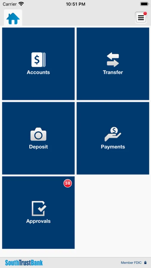 Getting started is easy. Simply download the app and sign on with your Business Online user credentials. [No additional fees apply.1]. For more information about SouthTrust Bank, N.A. mobile services, please visit www.southtrust.com or call us at 361-449-1571 ext. 5.