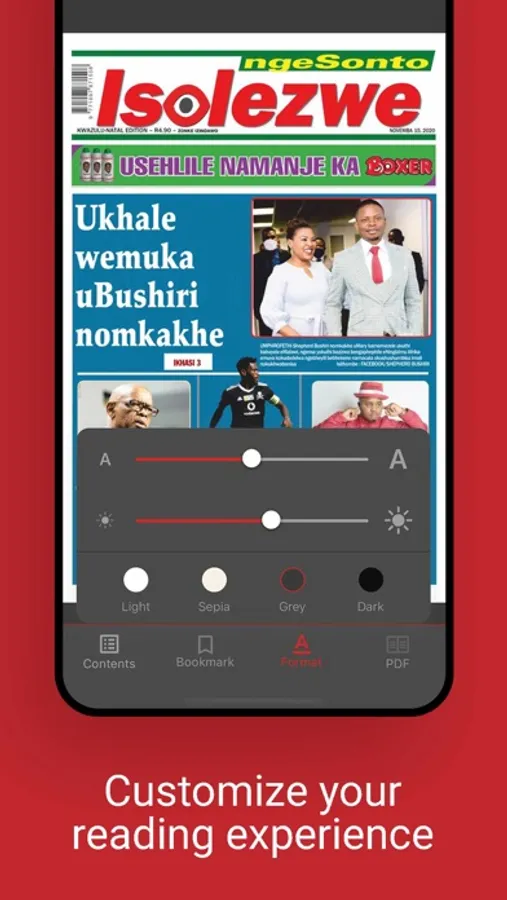 Isolezwe ngeSonto is a tabloid but with quality reporting. It is light on serious news and big on entertainment, TV and sports. Put together by the weekend editorial team, Isolezwe ngeSonto is tuned into the weekend mood, but without compromising on intelligence and respect for its readers.