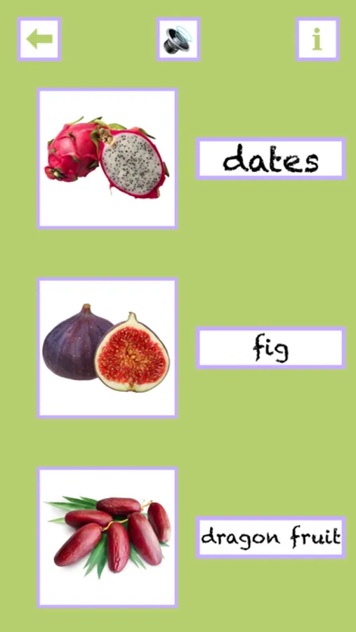 App with a delightful design with words grouped in themed collections, with their images and narrations in English, French, and Spanish
