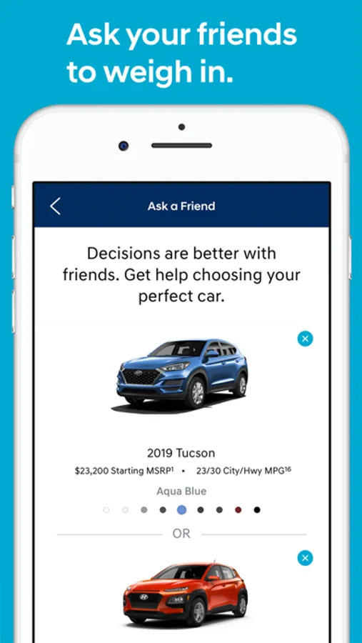 - Conveniently text friends in the app to help you decide which car is perfect for you.