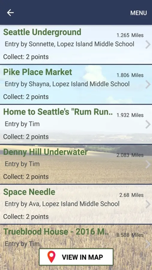 Many locations are assigned a point value, which can be collected when you are within GPS range of a location and have a connection to the internet. Pushing the “Collect Points” button while physically visiting a location will add the location’s points to your point total. To keep earning points, explore more locations. You can track your point total on your Account page.