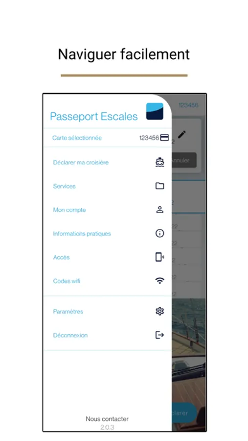 L'Application Passeport Escales, est réservée aux porteurs d'une carte Passeport Escales. Cette carte est remise par les ports adhérents à leurs plaisanciers. Connectez vous grâce à votre compte Passeport Escales. Une fois téléchargée l'Application permet de déclarer vos avis de croisières, effectuer vos demande d'accès et accéder à vos données personnelles.