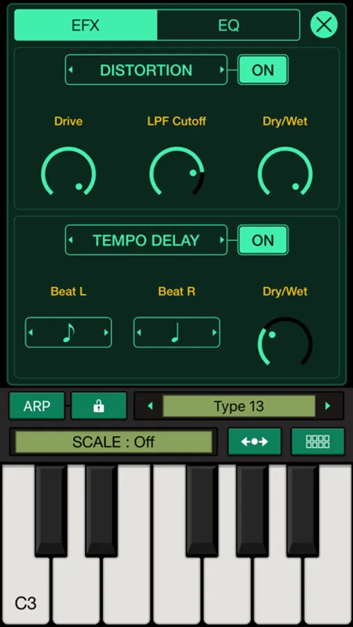 -You can play Arpeggiator and Chord pads in addition to keyboard with various scales.