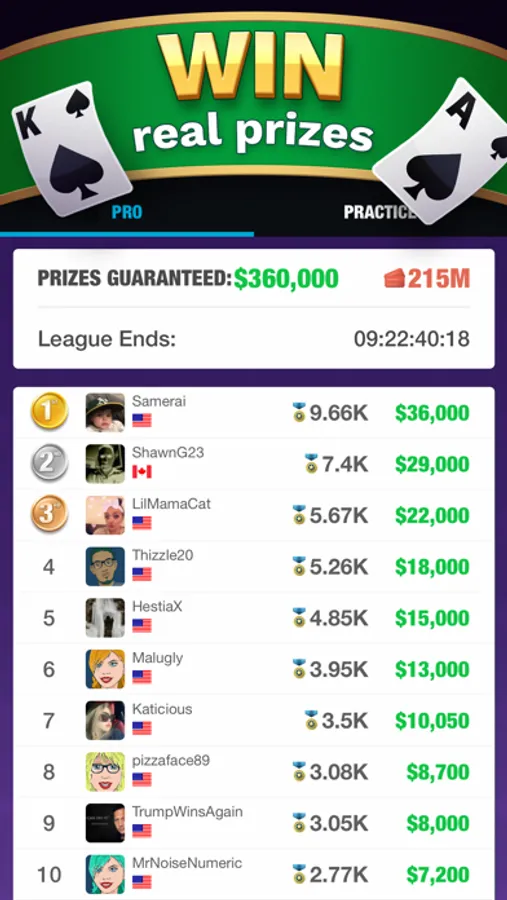 • Prize tournaments are available in about 75% of the world. Prize tournaments are not enabled in the following states: AR, CT, DE, IN, LA, ME, and SD. If you don't live in a real prize-enabled region, you can still play for fun with our virtual currency.