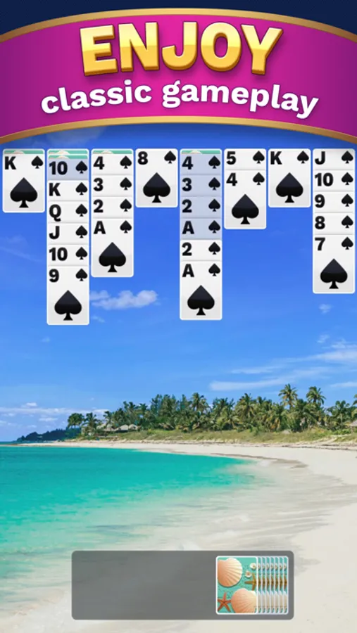 • Classic Spider Solitaire gameplay: Stack Aces to Kings to clear the board and win.