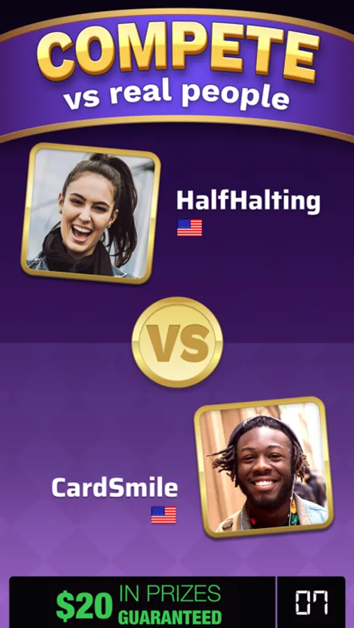Spider Solitaire Cube lets you compete with other people for fun or for cash prizes (where available).