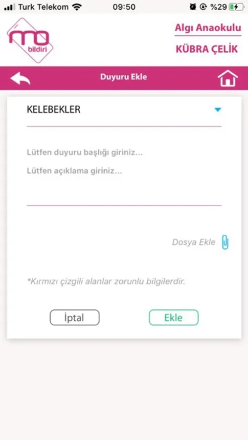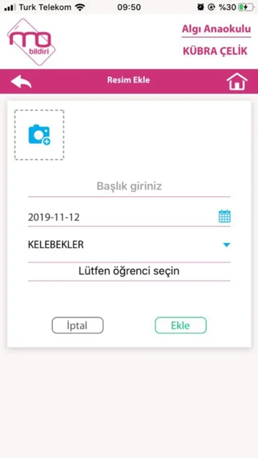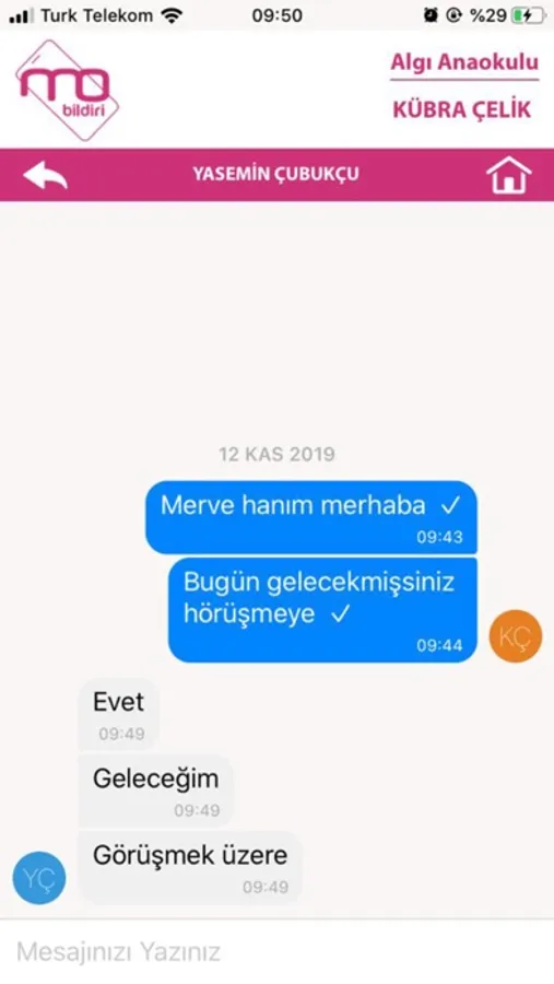 Öğretmen veliye anlık çektiği fotoğrafları çocuğun velisine hemen yollayarak o anın yaşamasını sağlamaktadır. Ayrıca veliye çocukların öğün öğün yedikleri yemek bilgilerini, ilaç takibi bilgisini de gönderebilmektedir.