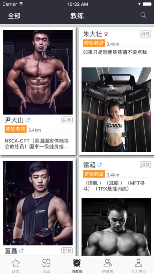 2、使用APP你可以查看、搜索岚庭会的所有私人教练,简单方便快速的预约教练