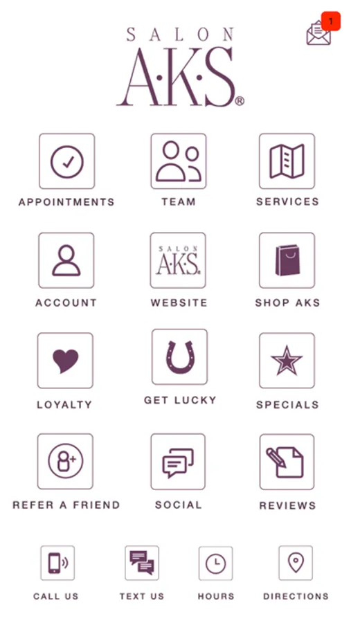 Easy access to Salon menu, Specials, Get alerts on specials, Hours, Directions, Make a Reservation and more.