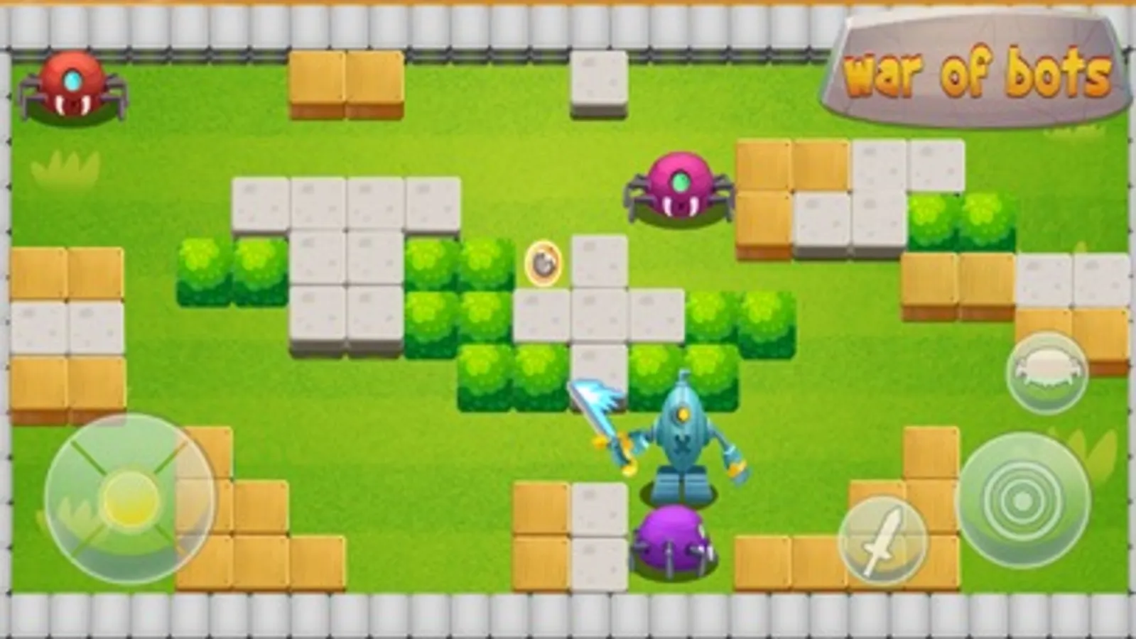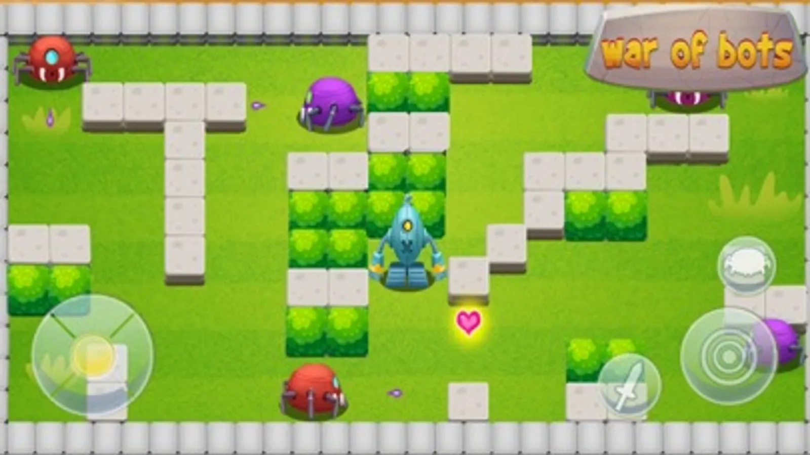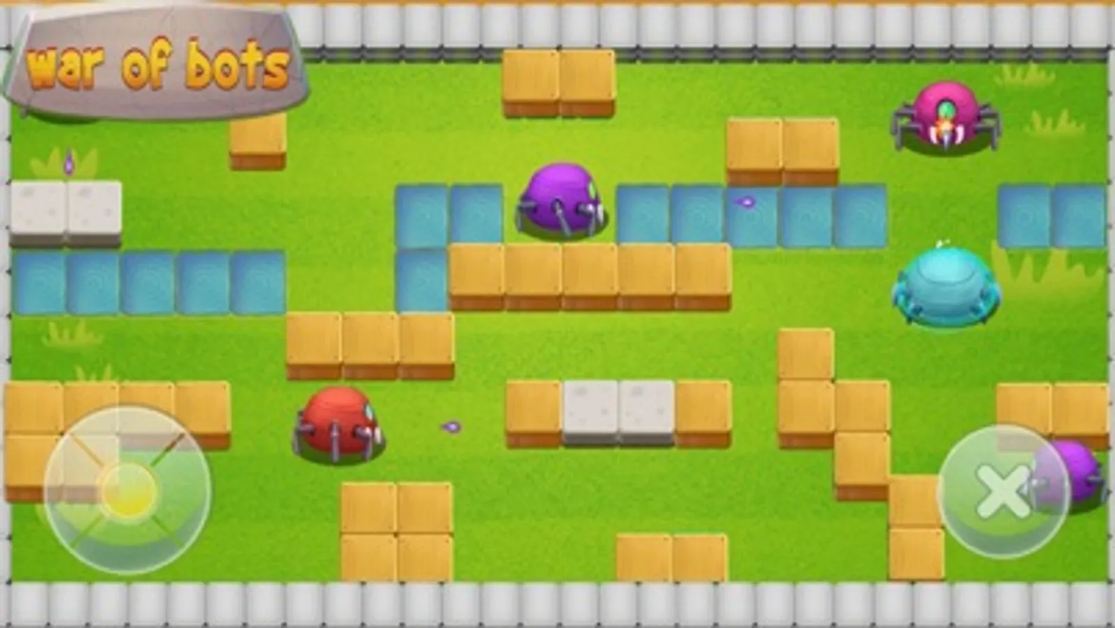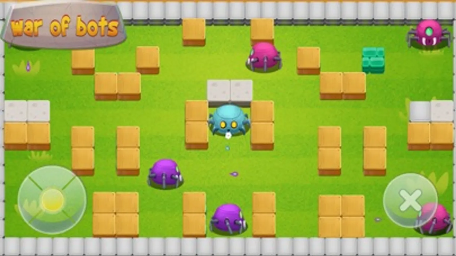 Play War of bots. You should destroy enemy robots in each level. The enemy robots attempt to destroy you. A level is completed when you kill all 20 enemy robots, but the game ends if your robot had been destroyed 3 times. Drive your bot to Boom the map, Summon your alliance, Strike the Enemy and win the battle!