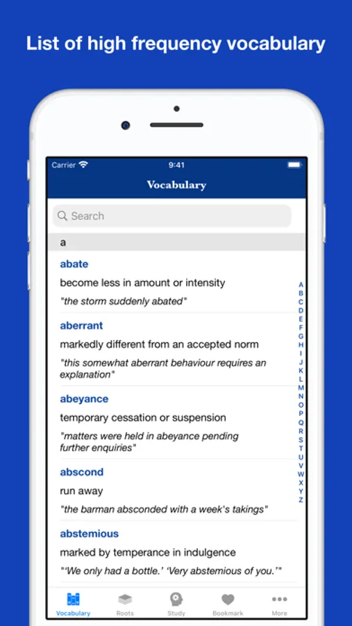 This app provides the digital tools and study material to help you remember words in this list and how to use them in actual context.